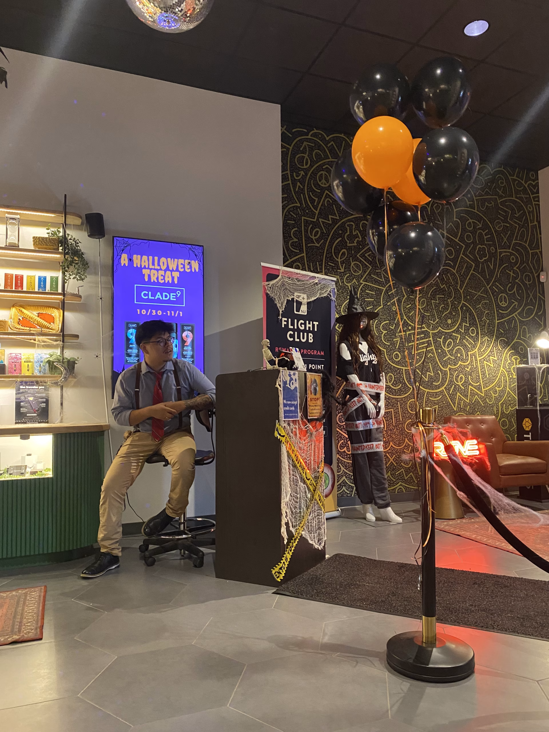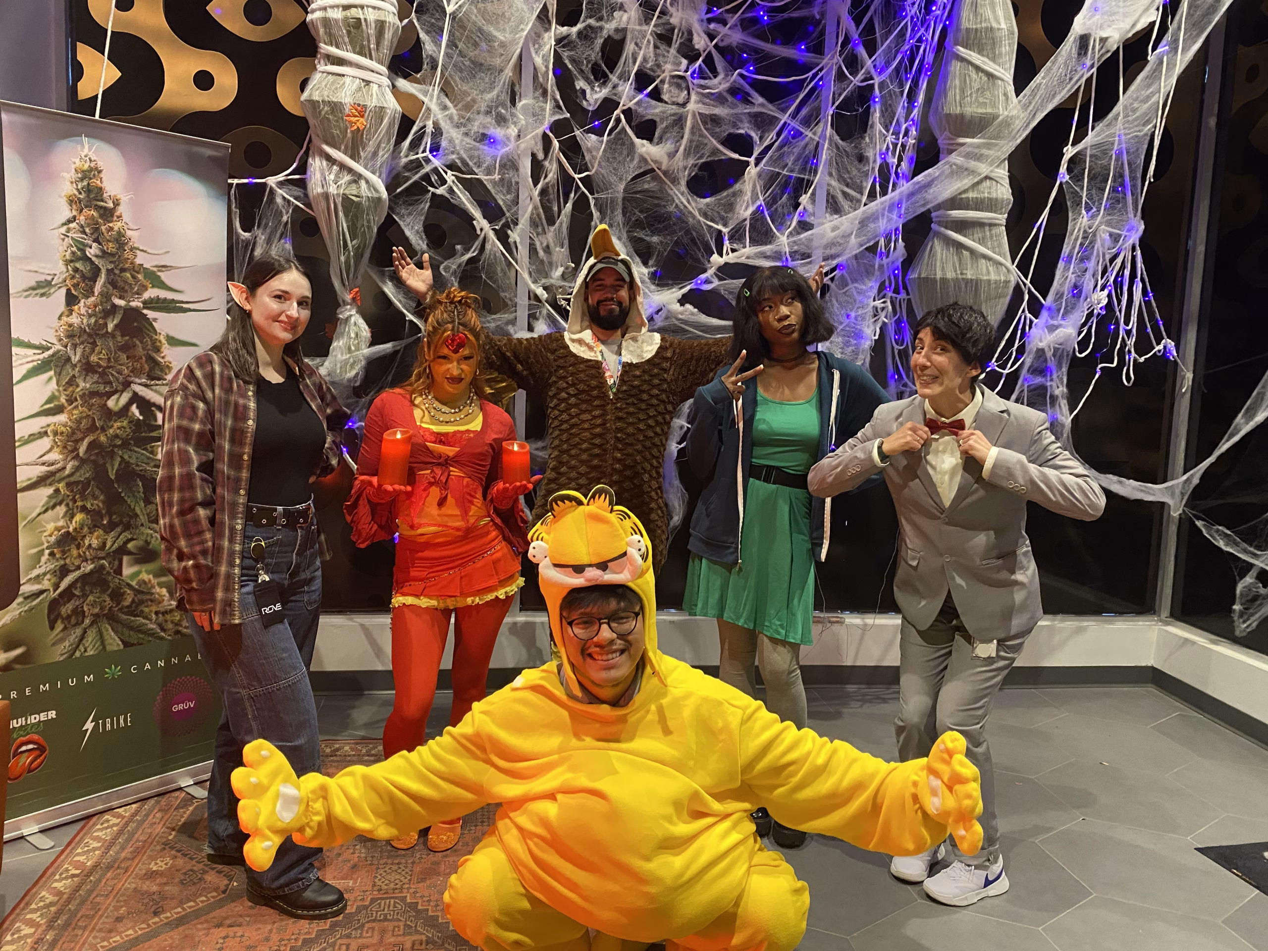 The night kicked off at 6:00pm with a mix of costume glitter, raffle tickets, stickers designed by Cynthia, and LOTS of candy. There were raffles for a WYLD skateboard, Green Lightning flower, Jersey Smooth vapes, and a Costume Contest where even dogs dressed up for a chance to win a prize … so good … that it practically deserved its own horror movie trailer.